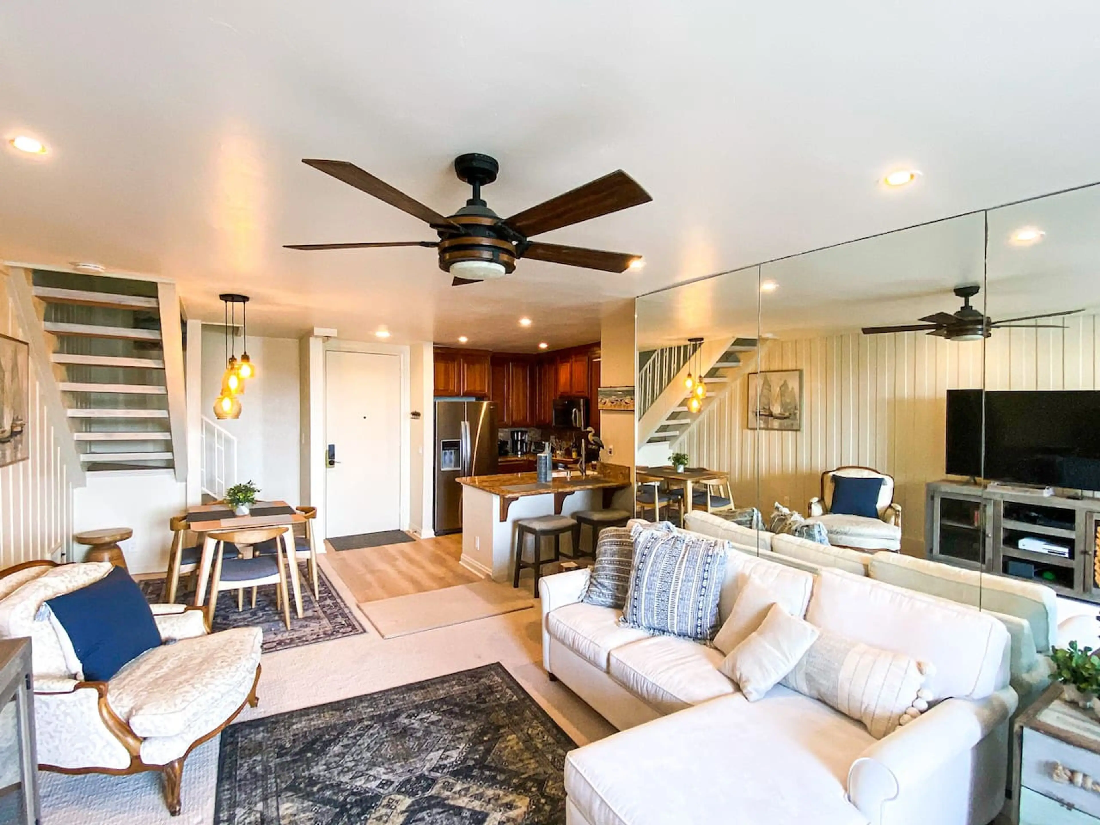 Wake up to the sound of waves and fresh ocean air in this two-story, ocean-facing condo at North Coast Village. Just steps from the sand, enjoy tropical gardens, pools, hot tubs, and more in a peaceful, resort-style setting. Walk to Oceansideโs vibrant downtown, relax on two private decks with panor...